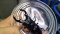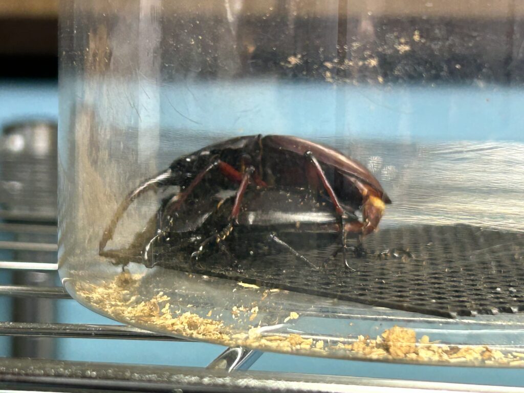卵を回収してから1か月くらいで孵化する。孵化した幼虫は頭の色が黄色くなってから200 cc プリンカップで1匹ずつ管理。3か月くらいで2~3齢幼虫になるので、頭の大きさで大まかに分類して、♂も♀も800 cc ボトルで管理する。マットは固詰めすると酸欠になるのか幼虫が上がってきてしまうので軽く詰める程度に入れている。我が家では生オガ配合マットを使用しているので、このままマット交換はせず半年以上管理して羽化までもっていく。幼虫サイズがそこまで大きくないことと、生オガは消化吸収に時間がかかりあまりエサを求めた移動を必要としないので、1500 cc のボトルで管理すると移動していない箇所のマットが劣化して生育にネガティブに作用してしまっているように感じるので800 ccボトルで管理している。明らかに800 cc のサイズが小さく感じる個体は1500 cc に移動させる。